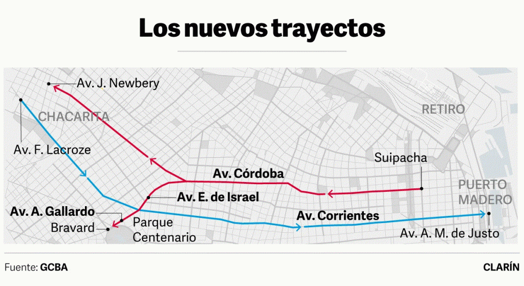 Dato: no serán doble mano, como la mayoría de las ciclovías actuales. Así, la de la avenida Corrientes correrá entre Federico Lacroze y Alicia Moreau de Justo, en Puerto Madero. Será en sentido hacia el centro y tendrá una extensión de 8,8 kilómetros. La de avenida Córdoba irá entre Suipacha y Jorge Newbery, con sentido del centro a Chacarita. Tendrá 6,9 kilómetros de extensión. También se harán carriles sobre Estado de Israel/Ángel Gallardo, entre Gascón y Bravard (en sentido Centro – Villa Crespo), durante 1,6 kilómetros, para llegar al Parque Centenario.