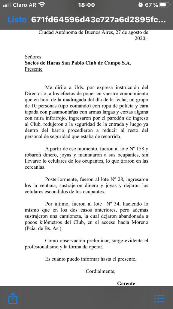 El caso ocurrió en el Club de Campo Haras San Pablo. Actuaron diez hombres armados y encapuchados.