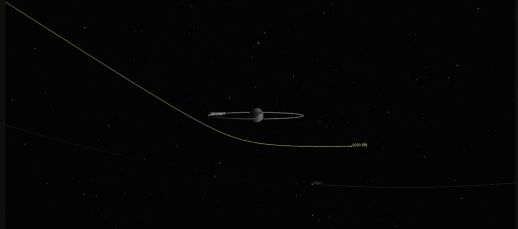 El 2020 SW, descubierto por @Catalina_sky, tiene unos 15 a 30 pies de ancho y pasará por la Tierra el jueves 24 de septiembre a una distancia de aproximadamente 13.000 millas (22.000 km).