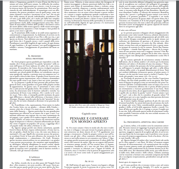 El documento se inspira en las enseñanzas de San Francisco y la predicación anterior del Papa sobre las injusticias de la economía global y su destrucción del planeta y las une con su llamado a una mayor solidaridad humana para enfrentar las “nubes oscuras en un mundo cerrado . “