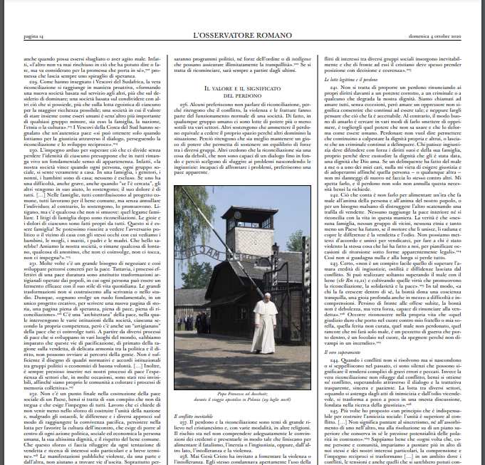 Francisco dejó en claro que el texto tenía una amplia circulación, imprimió la encíclica en el periódico vaticano L’Osservatore Romano y la distribuyó gratis en la Plaza de San Pedro el domingo para marcar la reanudación de las ediciones impresas luego de una pausa durante el cierre del COVID-19.