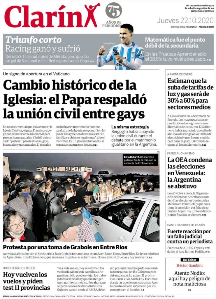 Inicio País Tapa de los diarios de hoy: jueves 22 de octubre de 2020. PaísSin categoría Tapa de los diarios de hoy: jueves 22 de octubre de 2020. 22 octubre, 2020 FacebookTwitterPinterestWhatsApp Artículos relacionadosMás del autor Sin categoría Sin categoría De lo que hablan todos - Advertisement - Recent Posts De lo que hablan todos 9 abril, 2026 0 Sin categoría 9 abril, 2026 0 De lo que hablan todos 9 abril, 2026 0 De lo que hablan todos 9 abril, 2026 0
