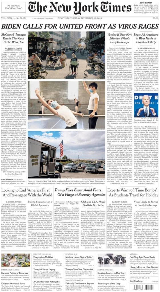 El mundo en papel: 10/11/2020.