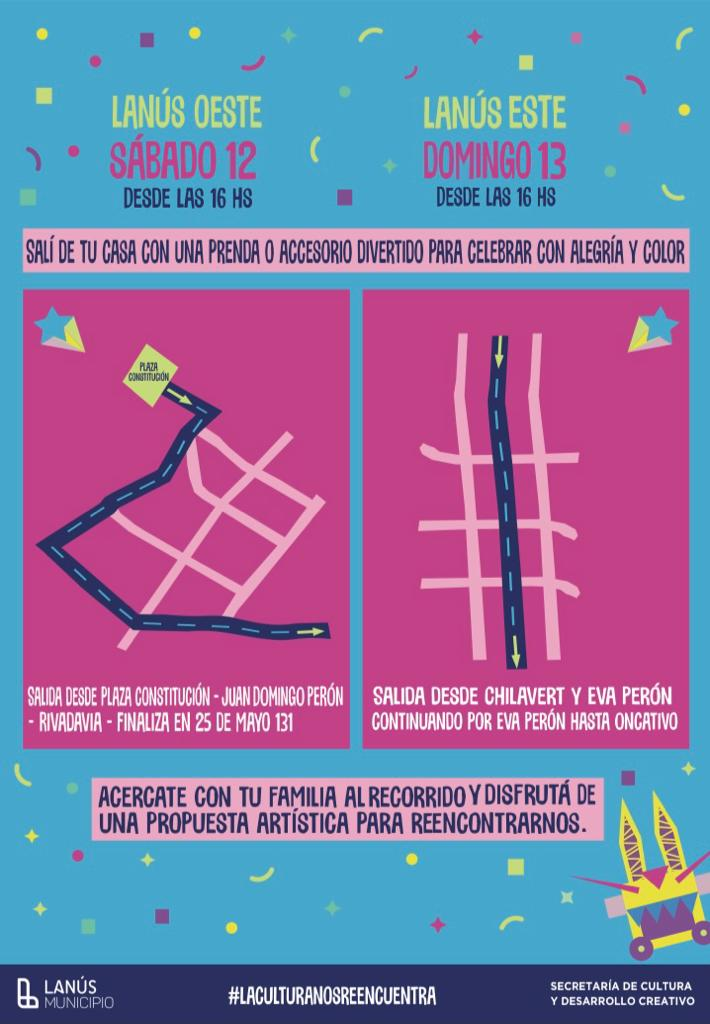 A modo de invitación, se sugiere a las familias lanusenses acercarse a los puntos mencionados con algún accesorio colorido para ser parte de esta propuesta artística, siempre cumpliendo con las medidas preventivas por Covid: tapabocas y distanciamiento social.