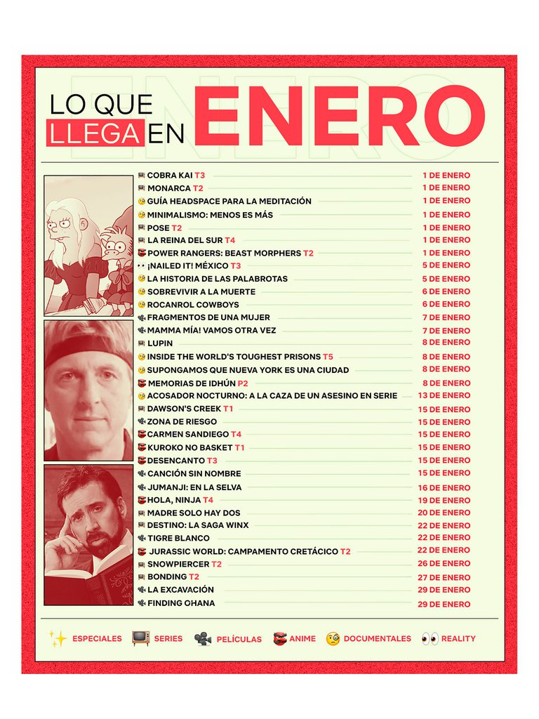 Netflix también presenta “Lupin”, una versión moderna del clásico francés Arsenio Lupin, protagonizada por Omar Sy (“Intouchable”), en dos partes; la primera, de cinco episodios, se estrenará el día 8 de enero. Sy es Assane Diop, un ladrón que se inspira en el personaje francés para vengar a su padre. La plataforma también ofrecerá “Sky Rojo”, la nueva producción internacional de Álex Pina, el creador de “La Casa de Papel” sobre tres prostitutas, una española (Verónica Sánchez); una argentina, (Lali Espósito), y una cubana (Yany Prado), que tras huir de su proxeneta (y haberlo dejado herido grave) son perseguidas por unos sicarios. La serie contará con dos temporadas de 8 episodios de 25 minutos de duración.