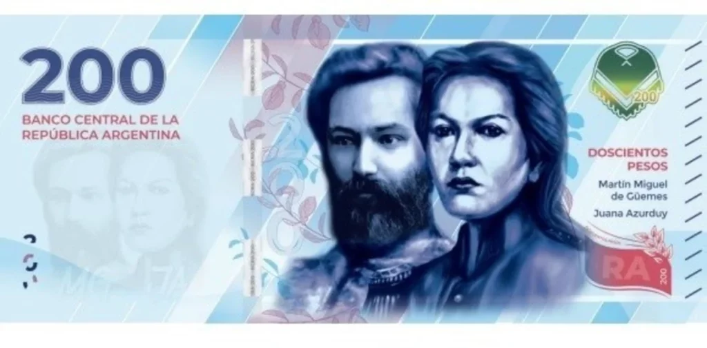 $200. Martín Miguel de Güemes intervino en la Reconquista y la Defensa de Buenos Aires durante las Invasiones Inglesas al Virreinato del Río de la Plata y luego tuvo un papel decisivo en la Guerra de Independencia. Fue gobernador de Salta y el gran protagonista de la Guerra Gaucha, la feroz resistencia que salvaguardó los territorios del norte del país. Sus fuerzas, los infernales, conformadas por gauchos y paisanos a caballo, fueron capaces de detener numerosos avances realistas. Juana Azurduy Su actuación en las guerras contra los realistas es reconocida con honores por Bolivia y Argentina. Tomó las armas en una sociedad que vedaba el acceso de las mujeres a la milicia, organizó y comandó batallones y logró movilizar a miles de indígenas y mestizos a favor de la causa de la independencia. Alcanzó el grado de teniente coronel e integró las tropas de Martín Miguel de Güemes. En 2009, el Gobierno argentino la ascendió post mortem con el grado de general.