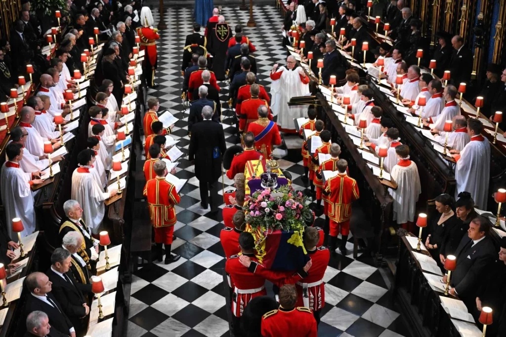 En el primer funeral de un monarca en la Abadía de Westminster desde el de Jorge II en 1760, todo comenzó con una primera procesión desde el Westminster Hall, hasta Westminster Abbey. La famosa abadía es considerada el mejor ejemplo existente del estilo gótico primitivo inglés donde se dieron las últimas coronaciones y casamientos reales. Allí, el 29 de abril de 2011 se casaron Guillermo y Kate (los padres de Guillermo, Carlos y Diana se habían casado en 1981 en la catedral de St Paul).